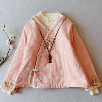 中國風刺繡復古棉麻棉衣女冬裝夾棉漢服盤扣上衣民族風棉襖外套厚
