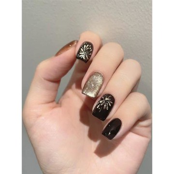 Lilynail美拉德黑棕煙花手工穿戴甲煙花美甲高級感指甲貼片可拆卸