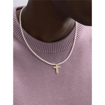 cross pearl necklace_十字架珍珠項鍊 5mm淡水珍珠