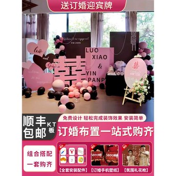 訂婚宴布置裝飾擺件全套黑粉色婚禮高級感簡約大氣喜字背景墻kt板