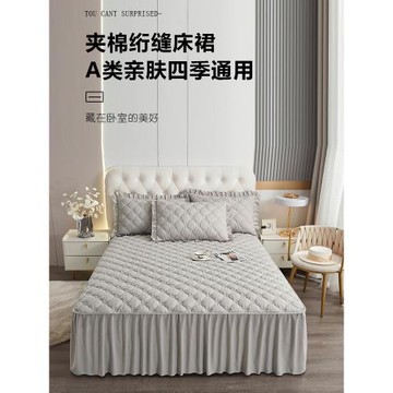 A類嬰兒絨夾棉床裙單件加厚秋冬保暖蕾絲雙人床罩防滑保護套1.8米