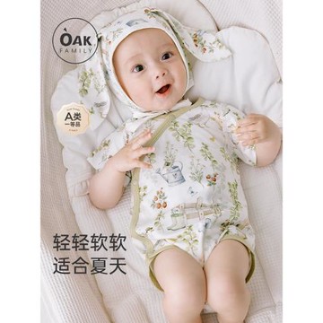 Oak Family嬰兒短袖連體衣夏季薄款包屁衣寶寶衣服新生兒滿月爬服
