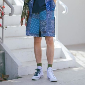 江戶勝|男裝|扎染側邊印花丹寧短褲
