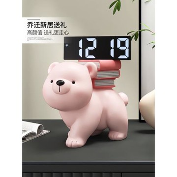 創意熊擺件數字電子時鐘客廳電視柜酒柜鐘表家居裝飾品床頭柜擺臺