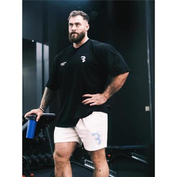 MCPW 男士夏季印花短袖T恤打底衫潮牌修身弧形下擺運動健身衣服