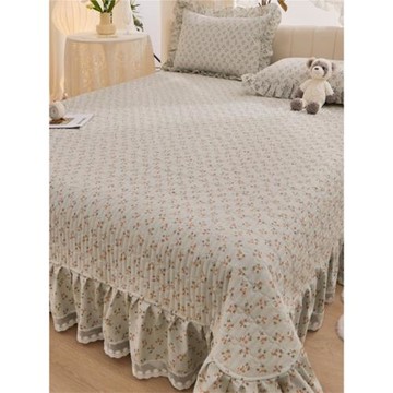韓式100全棉床蓋單件四季通用防滑純棉夾棉榻榻米床單床裙三件套