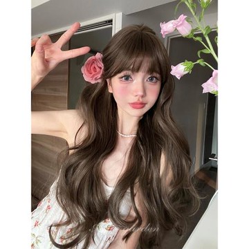 哼唧假發女長發奶茶色長卷發lolita自然空氣劉海假發全頭套式假發