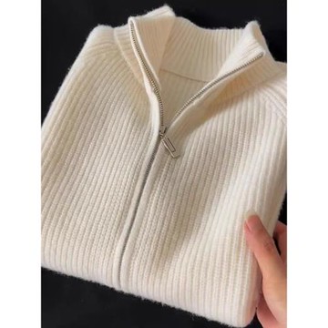 羊絨針織開衫男時尚山羊絨衫高級感輕奢軟糯上衣休閑拉鏈毛衣外套