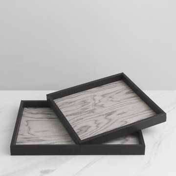 現代輕奢灰色木紋方形香薰托盤創意樣板間桌面收納托盤裝飾品擺件