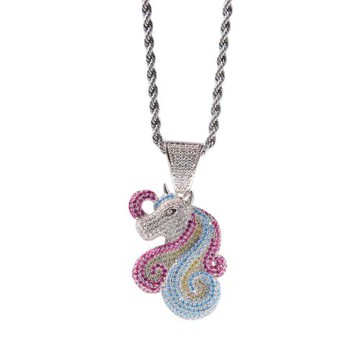 嘻哈卡通獨角獸情侶吊墜歐美可愛ins風潮項鏈彩色鋯石小馬毛衣鏈
