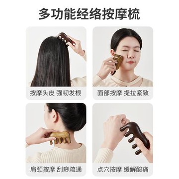 按摩梳天然綠檀木梳子寬齒梳家用頭部經絡梳頸肩刮痧臉部按摩便攜
