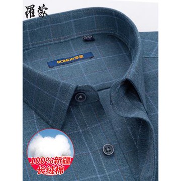 羅蒙襯衫男長袖純棉格子男裝商務休閑男士中年春季全棉磨毛襯衣寸