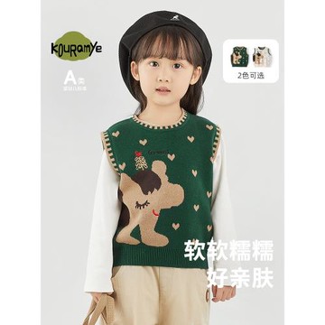 立刻下載酷娃米春季新款卡通背心女童可愛針織馬甲女寶寶上衣兒童毛衣坎肩