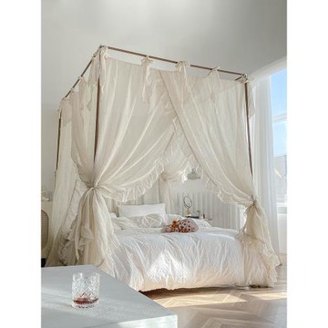 2025新款公主亞麻風宮廷落地蚊帳1.8m家用臥室老式架子床民宿床幔