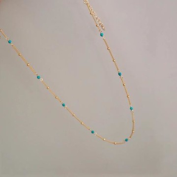 獨家設計綠松石珠珠美國14K包金注金氣質百搭細鎖骨項鏈洗澡可戴