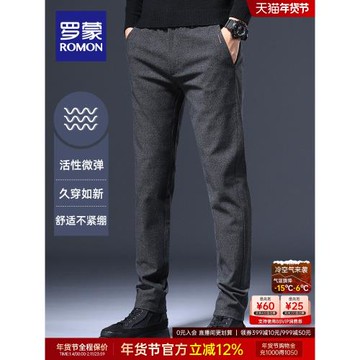 羅蒙男士休閑褲2025秋冬簡約商務修身百搭直筒褲彈力西褲長褲子男