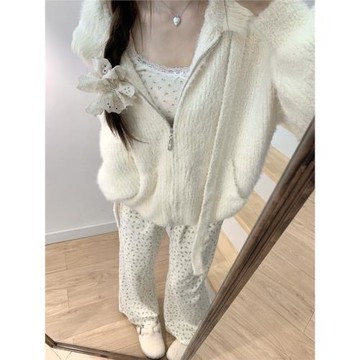 秋冬季溫柔系甜美針織連帽開衫外搭毛衣女款慵懶軟糯穿搭上衣外套