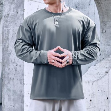 250g重磅純棉t恤男長袖純色內搭體恤寬松上衣男士白色打底衫潮ins