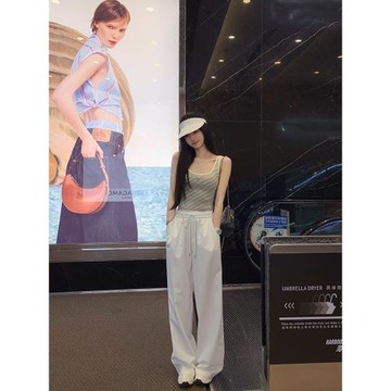 famouswang2025年夏季新款日常好穿百搭闊腿運動休閑長褲女小個子