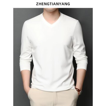 V領桑蠶絲長袖t恤男莫代爾男裝春秋季雞心領體恤純色內搭打底衫潮