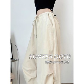 美式復古街頭辣妹灰色工裝褲女2025秋裝設計感降落傘褲束腳休閑褲