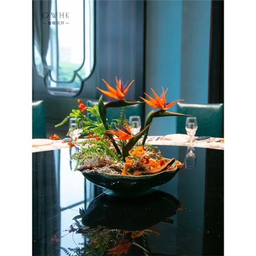 酒店圓桌轉盤仿真花餐桌花擺花中間擺件假花茶室茶樓餐廳裝飾