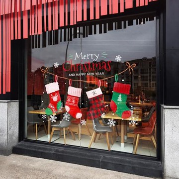 卡通圣誕襪靜電玻璃貼紙雙面艷麗靜電早教培訓幼兒園童裝店櫥窗貼