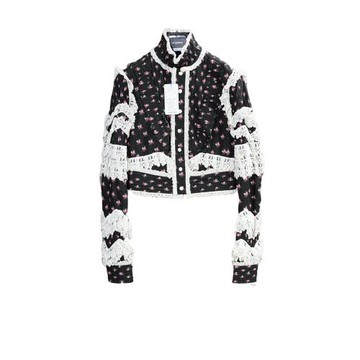 Dsquared2 17AW秀款女士超高價小香風蕾絲拼接超短款印花外套IT38