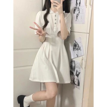 收腰顯瘦仙女小個子純欲絕美學院風白色polo連衣裙子2025新款夏季