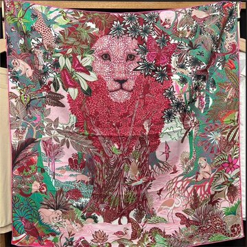 Hermes 愛馬仕 Jungle Love stamped 70 cm手工捲邊斜紋真絲方巾(米/胭脂紅/古銅)_廠商直送