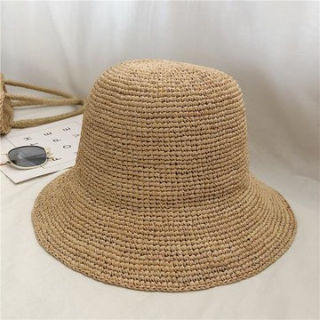 天然拉菲草手工遮陽草帽女夏透氣漁夫帽可折疊防曬帽子海邊沙灘帽