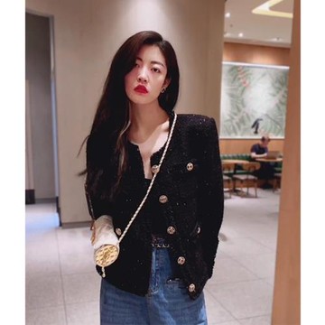 高級感超好看外套女春秋2024年新款短款夾克小香風黑色粗花呢上衣