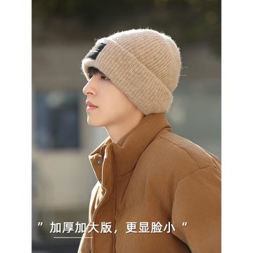 大頭圍帽子男款冬季保暖貼布毛線帽女秋冬針織帽加厚冷帽堆堆帽男