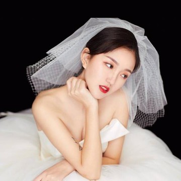 韓式甜美多層蓬蓬網格新娘頭紗短款簡潔婚紗婚禮森系旅拍造型頭紗