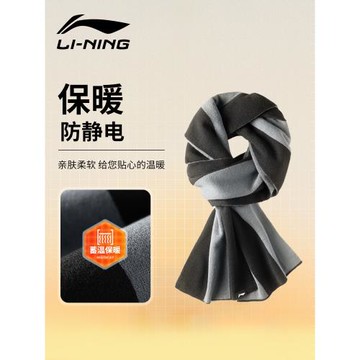 李寧圍巾男冬季2024新款防靜電送禮物男士保暖圍脖防寒冬天拼色款