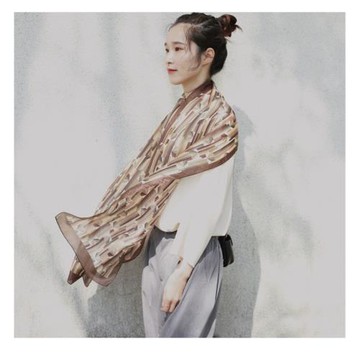 HERMES RIVER FERTILER圖騰皺褶絲巾/圍巾(咖啡色)