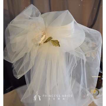 原創影樓拍婚紗照緞面花朵頭紗禮帽新娘婚紗造型化妝師出樣片頭飾