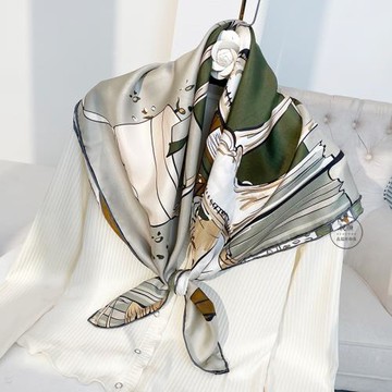 王妃梳妝臺墨綠色斜紋真絲圍巾女百搭90大方巾桑蠶絲絲巾防曬披肩