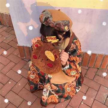 本守造原創手工拼接貝雷帽日本日韓日系小熊復古保暖0W