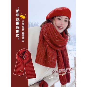 本命年紅色新年圍巾秋冬氛圍感2026新款龍年禮物圍脖女保暖男冬季