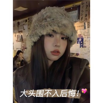 大頭圍帽子兔毛毛絨帽漁夫帽2025新款女顯臉小水桶帽秋冬針織帽