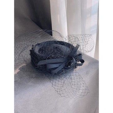 新款法式赫本麻紗黑色小禮帽女網紗英倫復古晚宴名媛晚禮服帽子冬