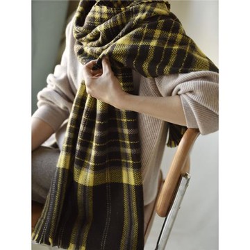 APCSHOP冬季保暖 人字紋百搭提花格子散須加厚小披肩羔羊毛大圍巾
