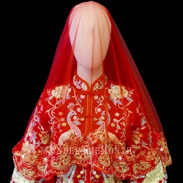 中式婚禮新娘結婚紅蓋頭半透明頭紗軟紗秀禾服喜帕中國風頭紗頭飾