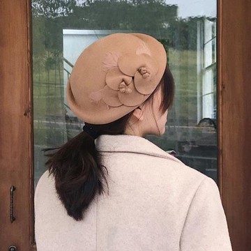 時尚花朵羊毛呢貝雷帽秋冬季韓版優雅時裝畫家帽子百搭復古氈帽女