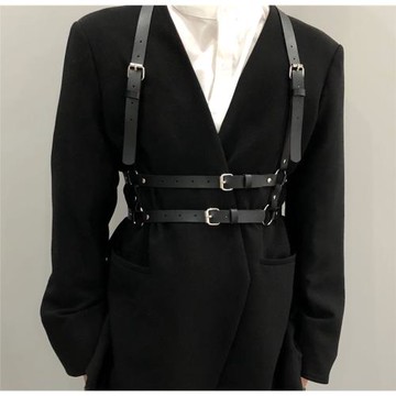 歐美暗黑風朋克機能感PU皮背帶酷少女潮皮帶肩帶組合西裝腰帶配飾