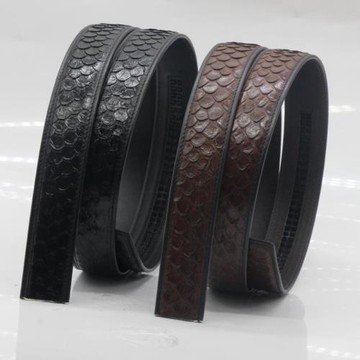 真蛇皮男士腰帶自動扣皮帶身 蟒蛇皮包邊褲帶無頭真皮皮帶條3.4cm