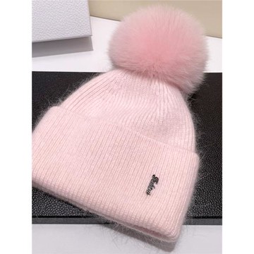法國2023新款M標狐貍毛球帽子女秋冬加厚保暖護耳羊毛針織毛線帽