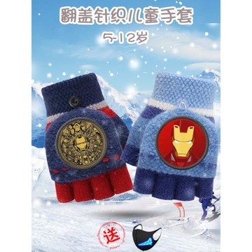 兒童手套男童冬鋼鐵俠半指卡通寫字可寫字男露指加絨中大童寫作業