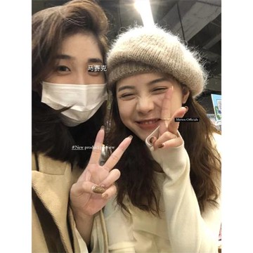 METWO 韓國兔毛貝雷帽女毛茸茸百搭休閑純色畫家帽子女潮英倫ins